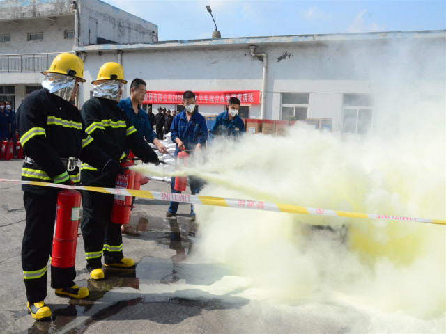 4月26日、27日,公司分别在主厂区北侧广场、工业园北侧广场举行2019年上半年综合应急预案演练。在安委办牵头组织下,以安保中心和主体生产车间为主导,200余名员工参加本次应急演练。